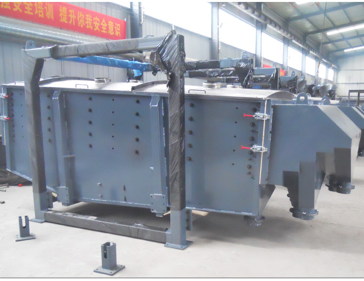 ? ? ? ? 壓裂砂振動篩在篩面上產(chǎn)生螺旋運(yùn)動,與網(wǎng)面接觸時(shí)間長而且物料始終在網(wǎng)面上滾動,不破壞物料的原有結(jié)構(gòu),透篩幾率大篩分效果好,產(chǎn)量大,篩分精度高,適合多種物料的篩分和篩選。從方形振動篩篩機(jī)搖動體及篩箱運(yùn)動軌跡中來看,振動篩其驅(qū)動裝置所產(chǎn)生的振動力是繞定軸方向的,呈現(xiàn)規(guī)律變化的慣性力,其本質(zhì)主要是由偏心輪定州轉(zhuǎn)動所形成的往復(fù)慣性力。根據(jù)方形振動篩的結(jié)構(gòu)特點(diǎn)以及工作原理,其篩面一般是水平或者微傾斜布置?;匦Y的工作原理為,篩機(jī)起動后,篩機(jī)搖動體即篩箱在慣性力的作用下作前后往復(fù)運(yùn)動,篩箱帶動篩面作周期性搖動,從而使篩面上的物料隨篩箱一同作平面回旋式運(yùn)動,其間,小于篩面孔徑的物料通過篩孔落到下層,成為篩下物,大于篩面孔徑的物料經(jīng)連續(xù)翻滾跳躍運(yùn)動后從排料口排出,然后完成篩分工作??蛇x用長2米寬4米或者其它的規(guī)格的方形搖擺篩,一般篩選20-120目之間的石英砂,一小時(shí)可達(dá)8-15噸。精度可達(dá)95%以上。