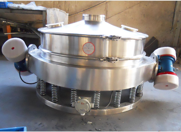 ? ? 面粉振動篩可以選擇上面的這種型號。它又叫做旋振篩或者三次元旋振篩、篩分機、圓振篩等。這種振動篩換網(wǎng)方便,精度高、效率高、使用方便。出料口可360°調(diào)節(jié)。型號從直徑400mm-2000mm不等。安裝40目篩網(wǎng),使用1米的機器,一小時可篩選1500公斤左右的面粉。適合食品廠使用。但是有的公司需要將物料直接從下部排出去,那么就可以選擇直排篩。